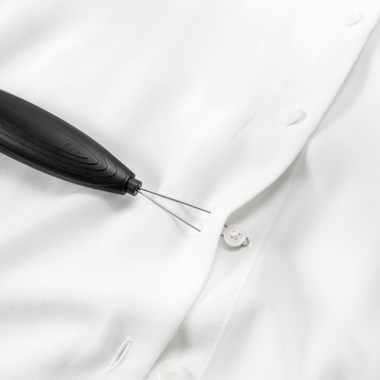 Su doble función —pasa botones y sube-cremalleras— lo hace muy versátil: un extremo sirve para enganchar y pasar botones por su ojal, y el otro extremo funciona como tirador para cremalleras, ideal para camisas, chaquetas, pantalones o ropa íntima.