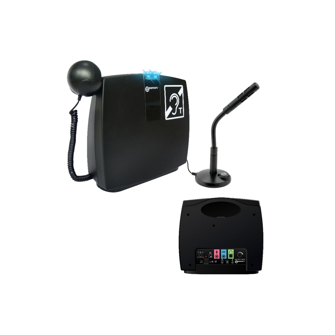 - Bucle de inducción integrado con amplificador y auricular externo.