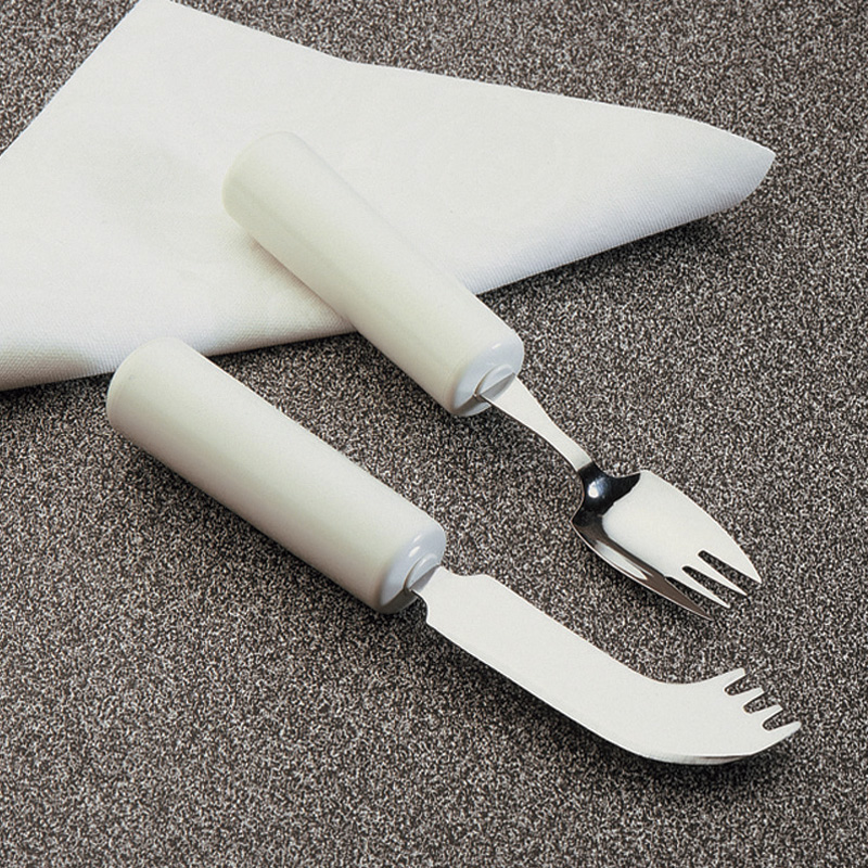 Cucharas y tenedores curvados a izquierda o derecha y cuchillo mecedora.