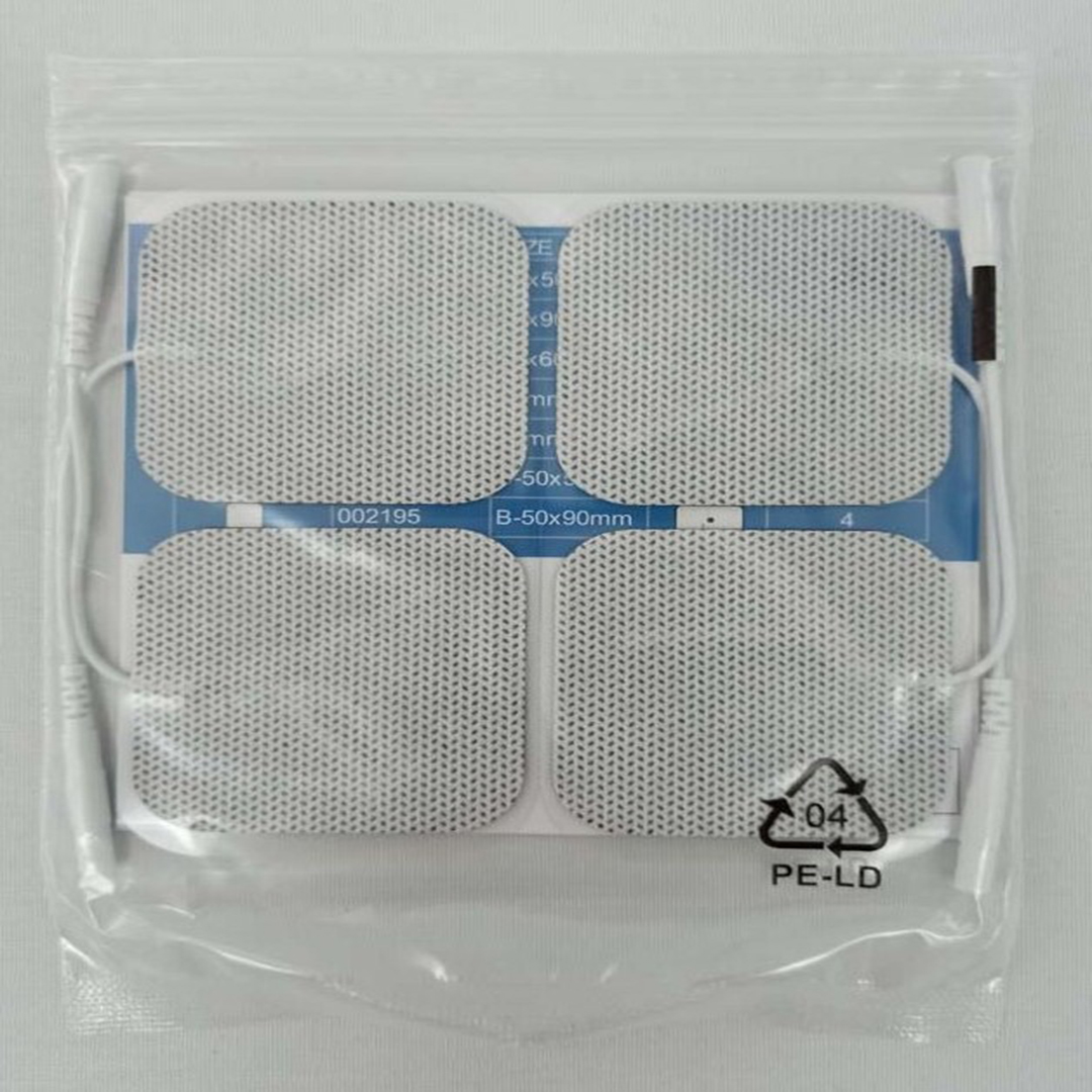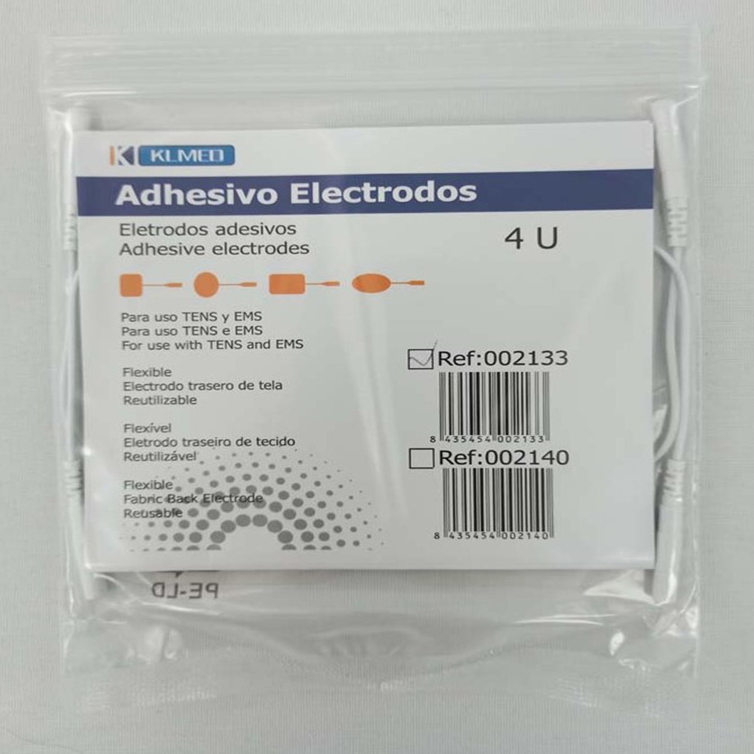 - 4 electrodos de tejido vinílico con hidrogel hipoalérgico de 50 x 50 mm.