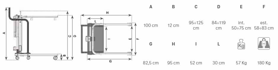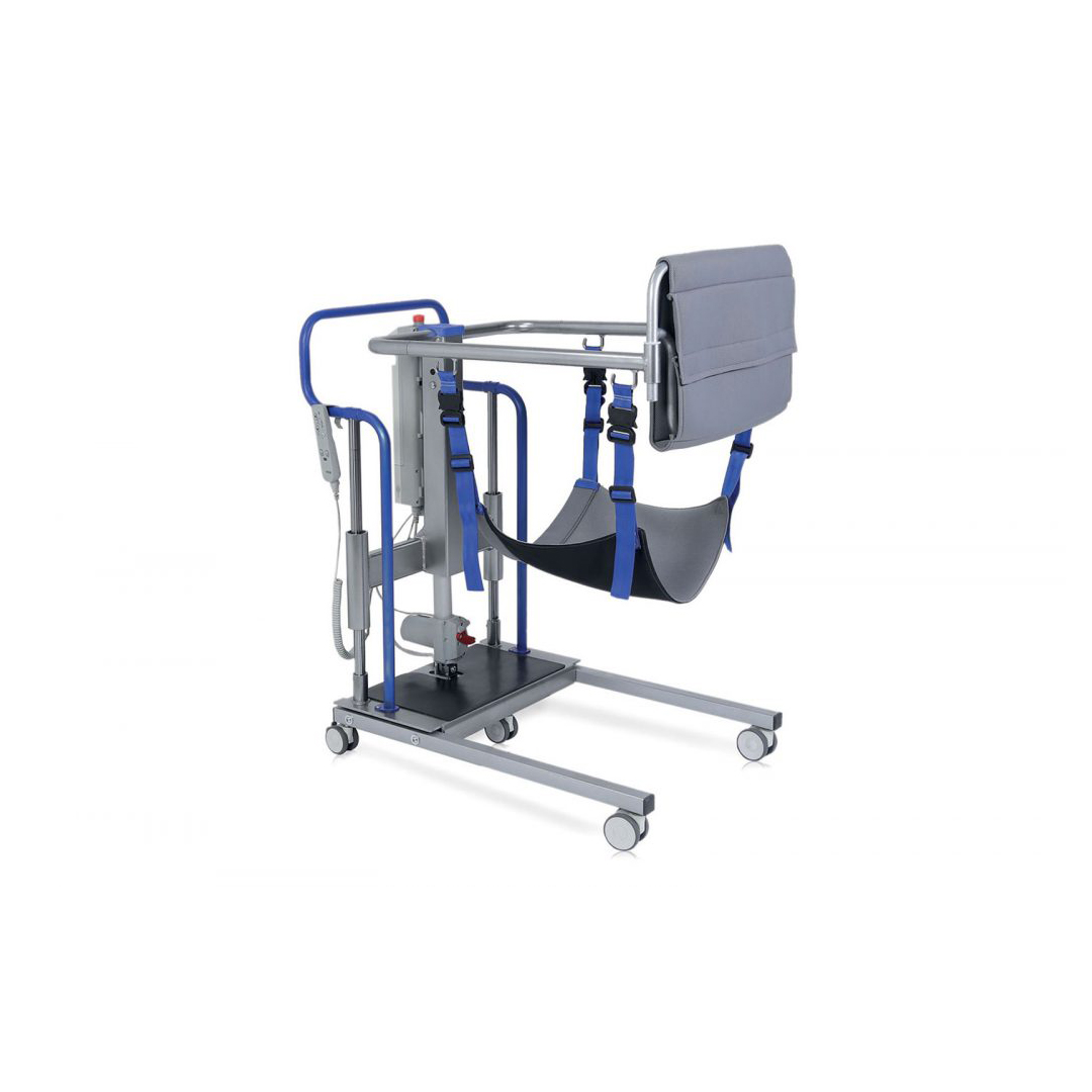 Uno de sus grandes beneficios es su sistema de apertura eléctrica de piernas, que permite ajustar el ancho de 50 a 75 cm, facilitando el acceso a sillas de ruedas, sillones o camas. También cuenta con regulación eléctrica de altura de 85 a 125 cm, adaptándose a distintas situaciones y necesidades.