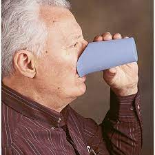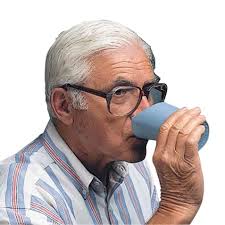 Este vaso adaptado es un utensilio de vida diaria fundamental. Está especialmente indicado para aquellos que tienen dificultad o dolor al realizar la hiperextensión del cuello.