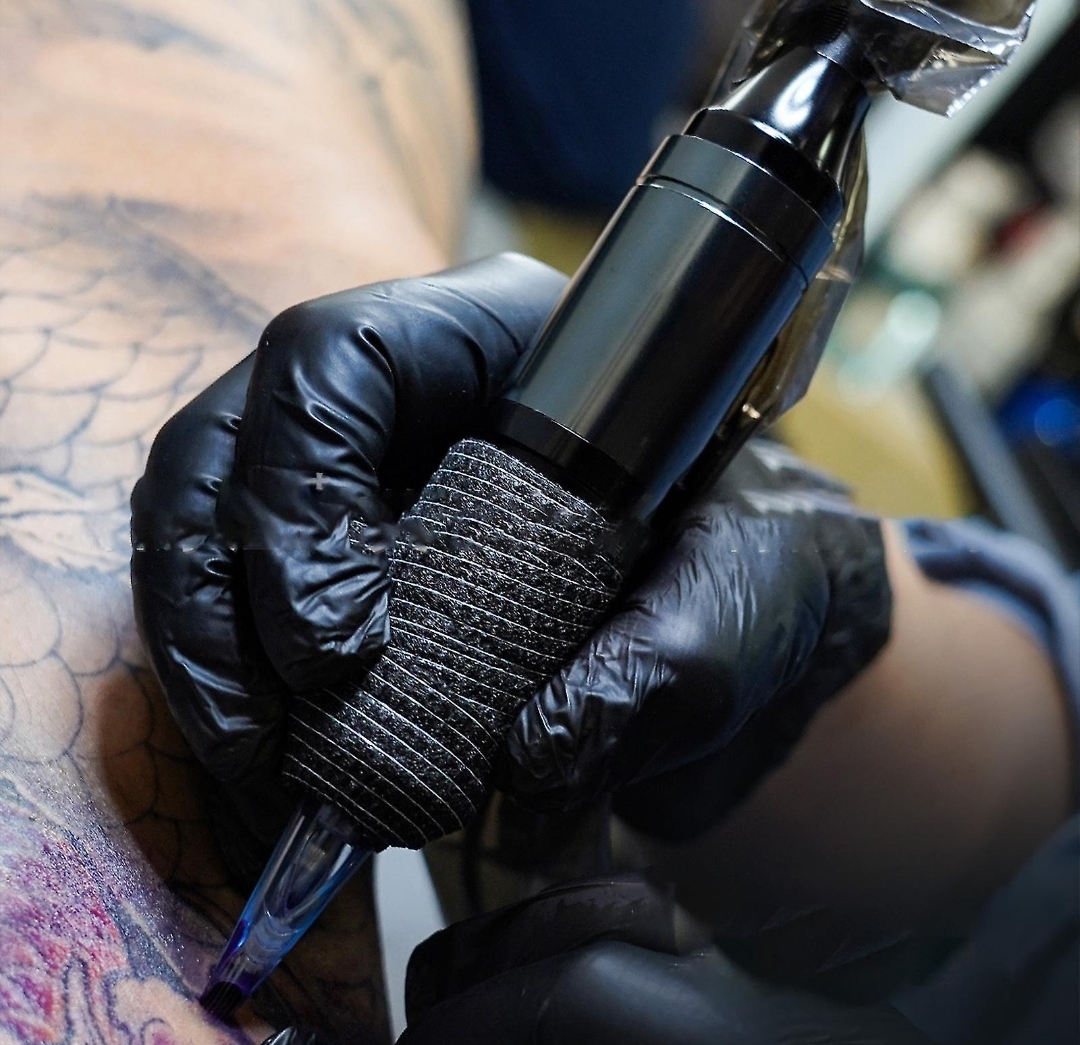 La cinta de agarre de tatuaje se puede envolver alrededor del mango de la máquina de tatuaje. Ayuda a evitar el deslizamiento del mango y crear obras de arte perfectas para tatuajes.
